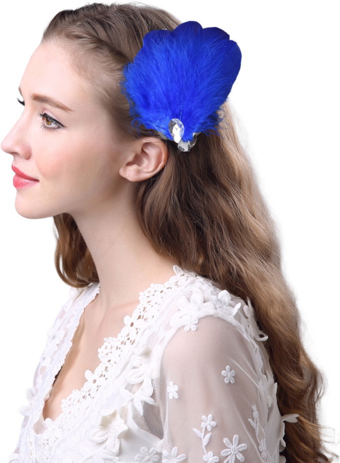 羽根 フェザー ヘアアクセ 【ブルー】ビックコサージュヘッドドレス 髪飾り ダンス バレエ バレリーナ cy7-pa