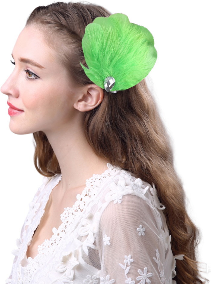 羽根 フェザー ヘアアクセ【グリーン】 ビックコサージュヘッドドレス 髪飾り ダンス バレエ バレリーナ cy7-p0