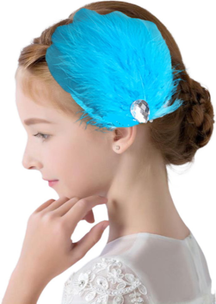 羽根 フェザー ヘアアクセ 【ライトブルー 水色】ビックコサージュヘッドドレス 髪飾り ダンス バレエ バレリーナ cy7-pa