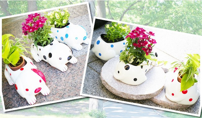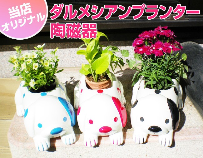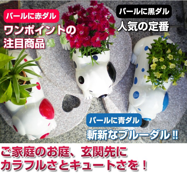 ♪当社大人気のオリジナルダルメシアン車止めをモチーフに陶磁器プランターを作成致しました。オリジナルの自信作です?