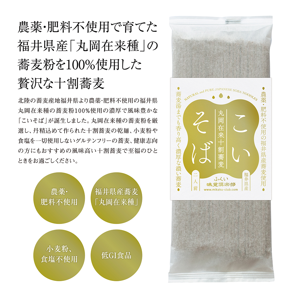 「こいそば」 十割蕎麦 農薬不使用・肥料不使用 7年産 福井県産丸岡在来種蕎麦粉100%使用 200g入×3袋 ゆうパケット便で送料無料