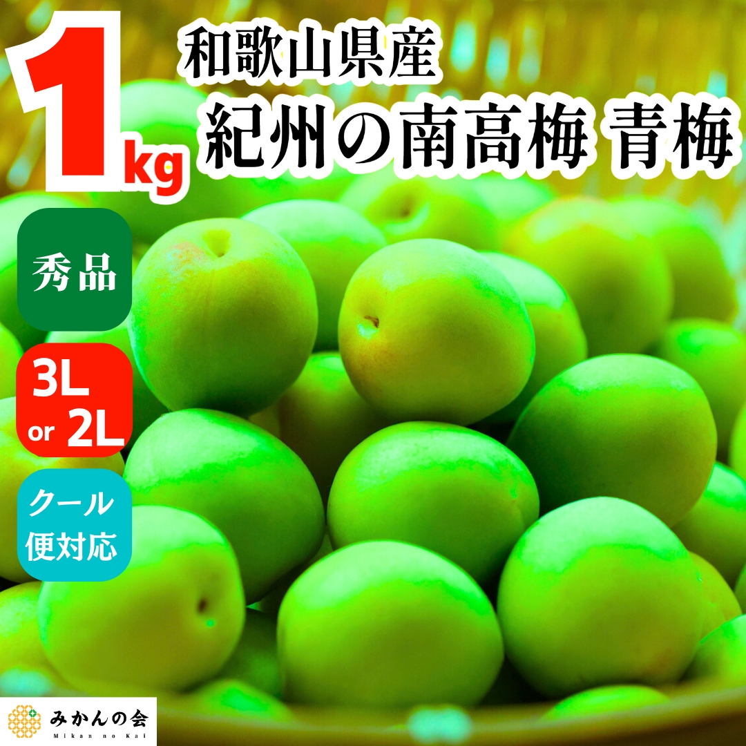 南高梅 青梅 秀品 1kg 3L or 2Lサイズ 和歌山県産 紀州有田 産地直送 クール便対応 梅酒作り用 梅ジュース作り用 2026年6月初旬出荷