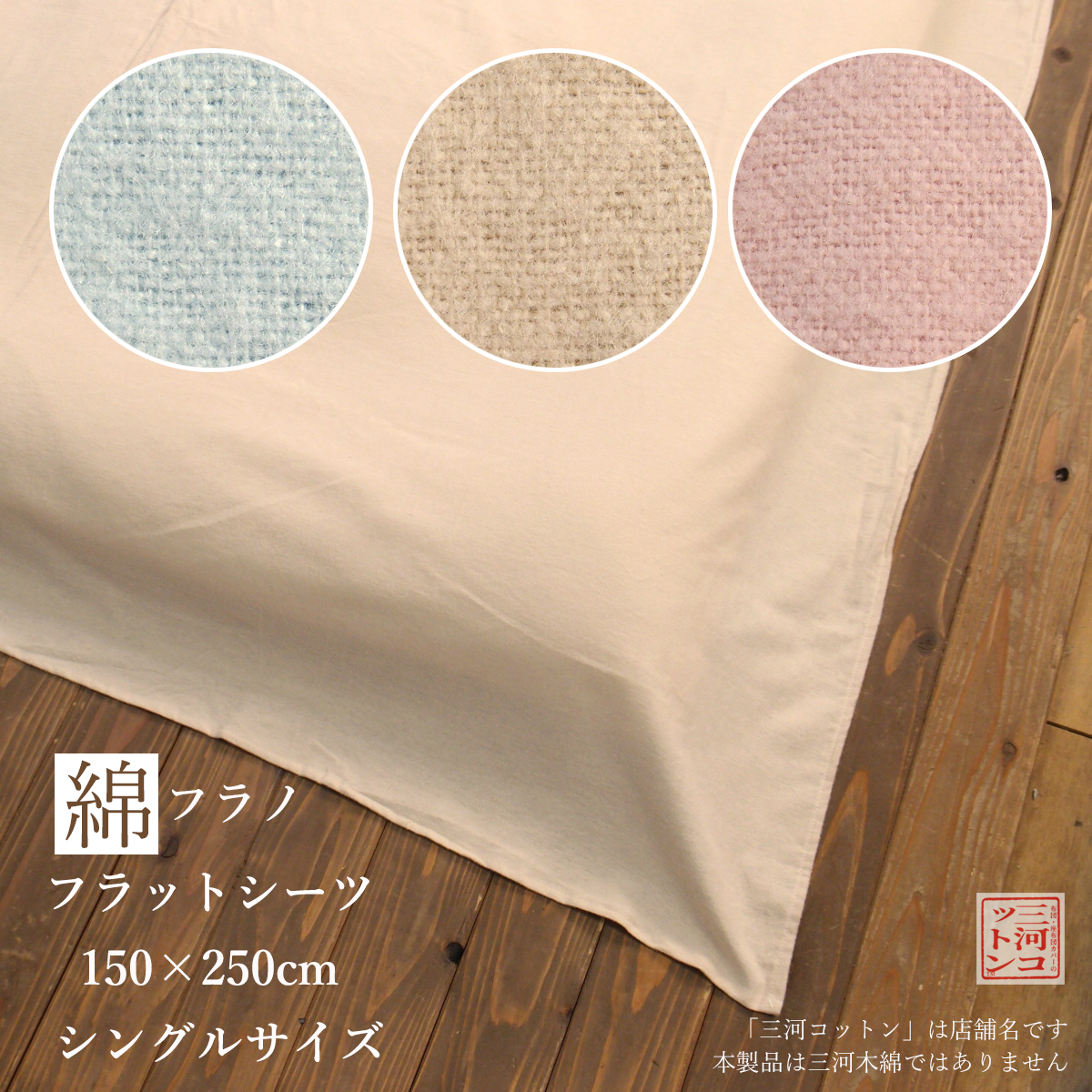 綿フラノシーツ フラットシーツ 綿100 シングル あったかシーツ 150×250cm 綿100% 起毛 ブルー ピンク ベージュ 無地 シングルシーツ 冬 暖かい あったか