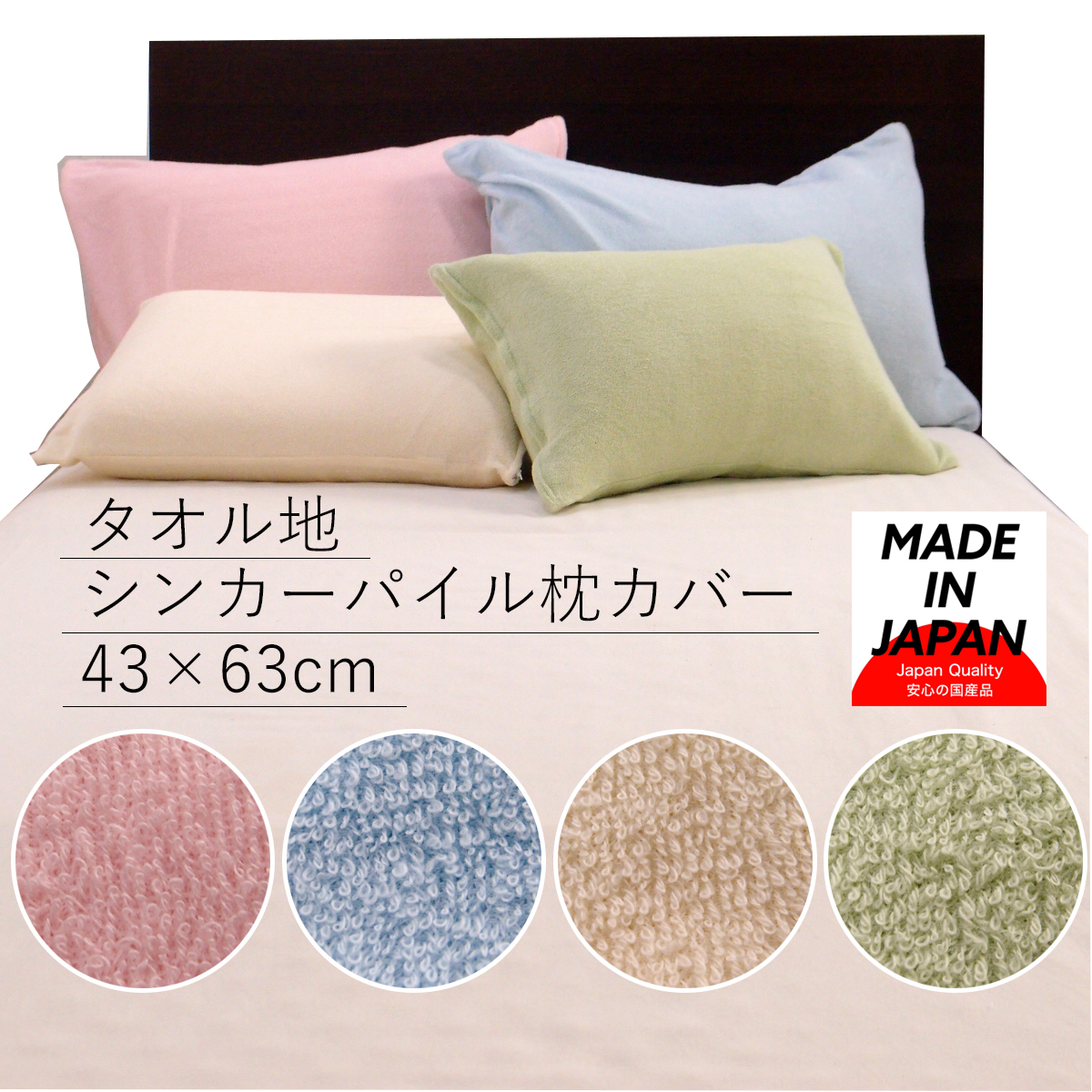 枕カバー 43×63 タオル地 ファスナー ピローケース パイル 日本製 シンカーパイル 無地 まくらカバー マクラカバー 洗える ピンク ブルー ベージュ グリーン