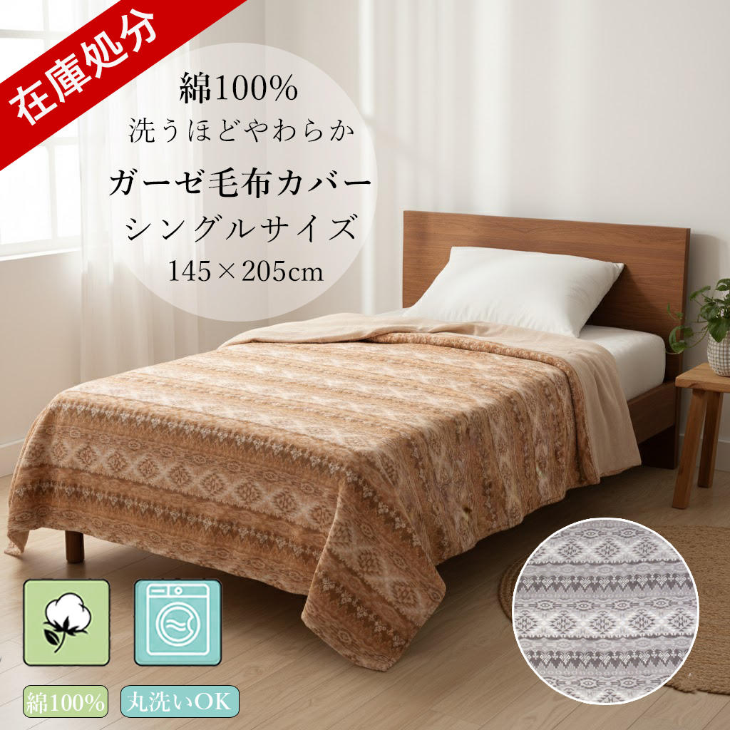 送料無料 毛布カバー シングル 綿100% ガーゼ 布団カバー 145×205cm 洗うほど柔らか 丸洗いOK 肌に優しい 介護 保育園 お昼寝
