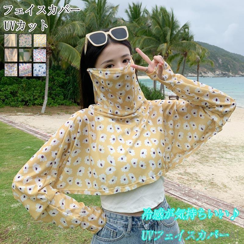 ラッシュガード レディース UVパーカー UV フェイスカバー UVカット パーカー フェイスマスク 薄手 長袖 トップス ドルマン 日焼け止め スポーツ マスク 指穴 ア