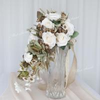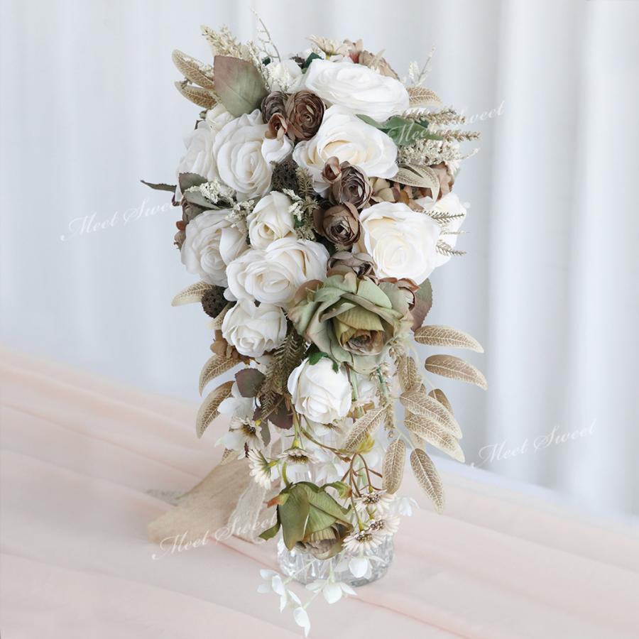 ウェディングブーケ ブライダルブーケ キャスケードブーケ ウエディングブーケ 花嫁 ブーケ 造花 花束 華やか エレガント 結婚式 二次会 披露宴 カーキ