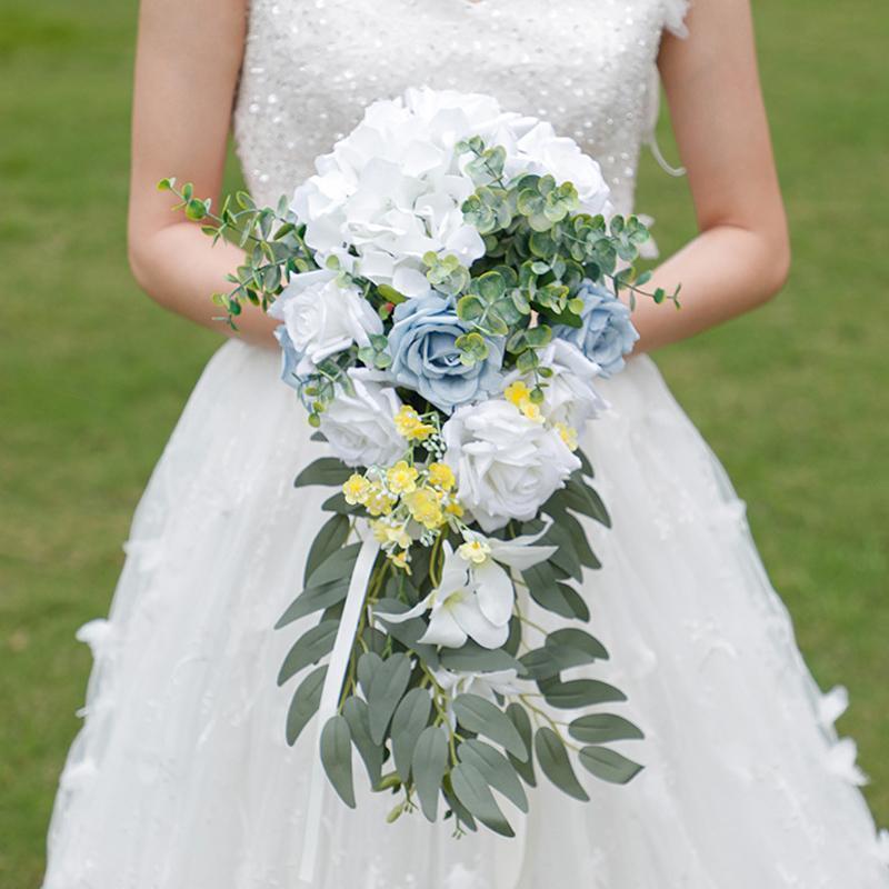 ウェディングブーケ ウエディングブーケ キャスケードブーケ ブライダルブーケ 花嫁 ブーケ 造花 華やか 結婚式 二次会 リゾート婚 ホワイト 白 ブルー 青