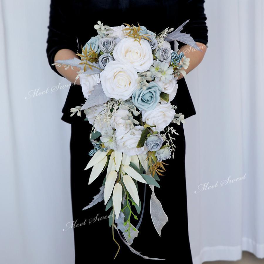 ブーケ ウェディングブーケ ブライダルブーケ キャスケードブーケ ウエディングブーケ 花嫁 造花 花束 華やか 結婚式 二次会 披露宴 リゾート婚 ブルー 青