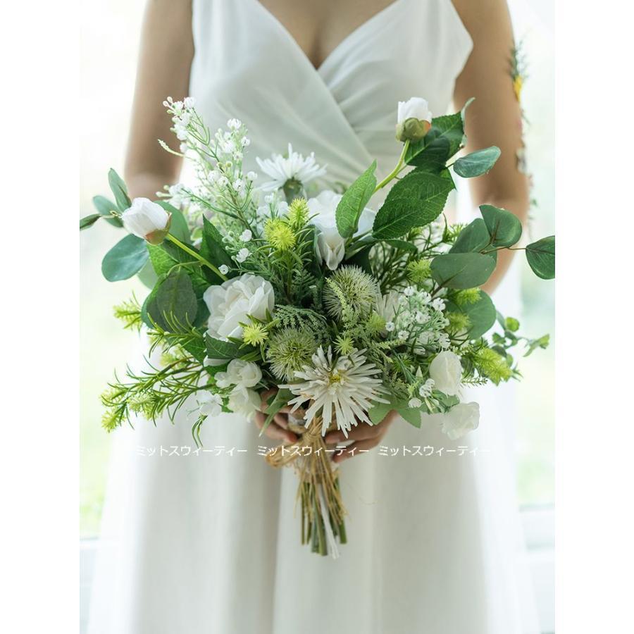 ウエディングブーケ 二次会 結婚式 ウェディングブーケ 花嫁 グリーン系 披露宴 前撮り 造花 ブライダルブーケ 海外挙式 クラッチブーケ 個性