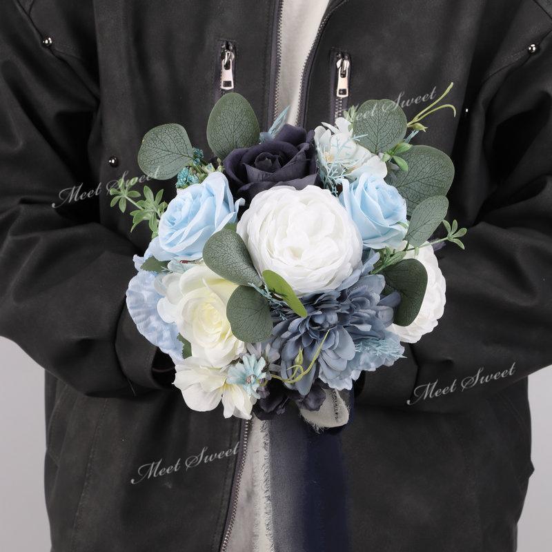 ブーケ ブライダルブーケ ラウンドブーケ ウエディングブーケ 花嫁 造花 可愛い 結婚式 二次会 披露宴 後撮り リゾート婚 ギフト プレゼント ブルー 青