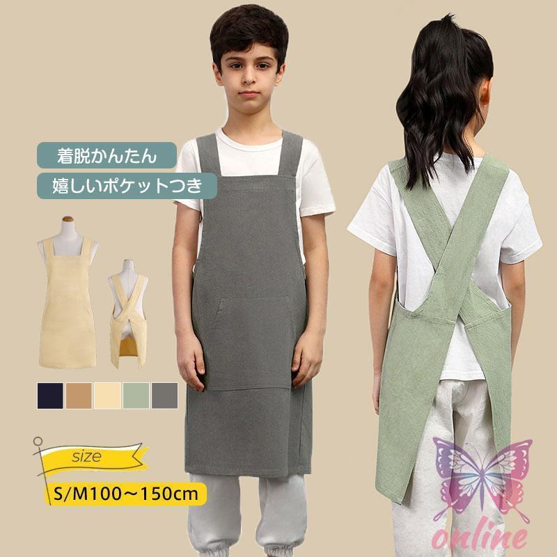 キッズ 子供 エプロン DIY おしゃれ 色落ちしない こども お絵かき 男の子 女の子 男女兼用 小学生 調理実習 ユニセックス キッズ用エプロン