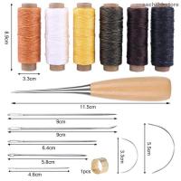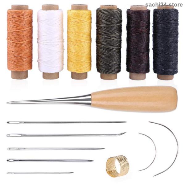 蝋引き糸 30m 6色 手縫い針 ワックスコード 千枚通し レザークラフト用具15点セット皮革 手作り レザークラフト 糸