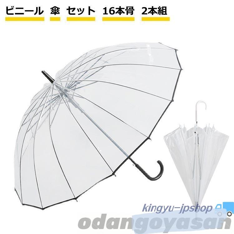 ビニール傘 ビニール 傘 セット 16本骨 2本組 風に強い 丈夫 頑丈 グラスファイバー クリアー 透明 周囲が見えやすい 安全 16本骨 ジャンプ