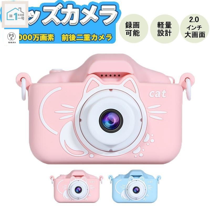 子供用カメラ トイカメラ キッズカメラ デジタルカメラ 前後2000w画素 シリコンカバー付き 撮影 ビデオ 可愛いネコ おもちゃ プレゼント