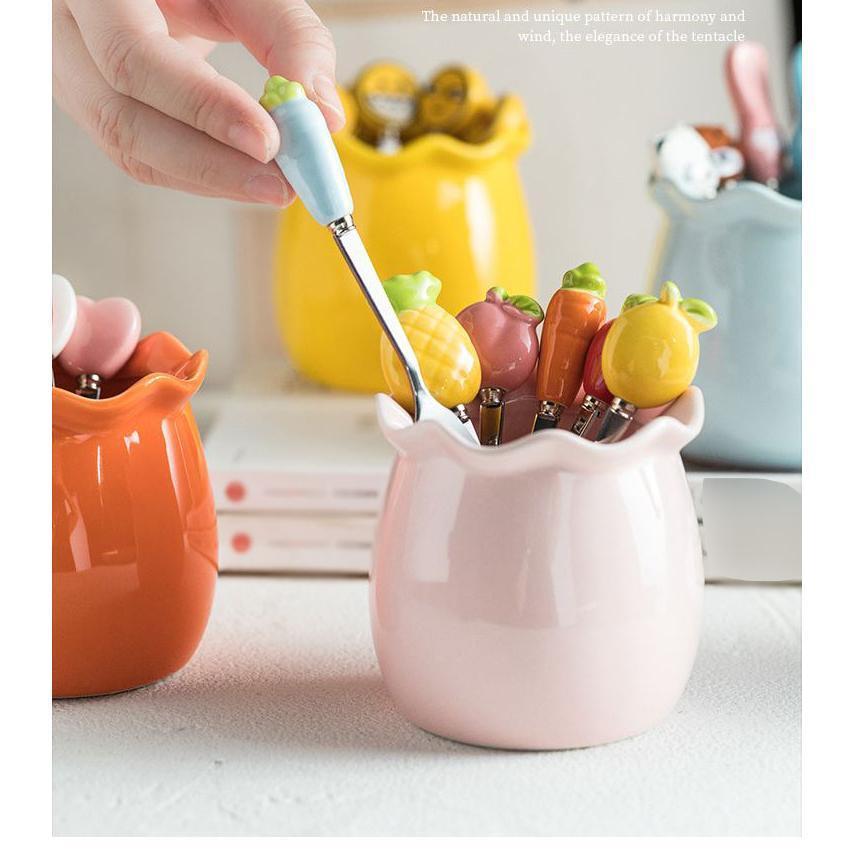 商品名:送料無料 フードピックセット カトラリー フルーツピック フォーク 6本入り フルーツフォーク フルーツピック ミニフォーク ピックフォーク 台座付き かわいい