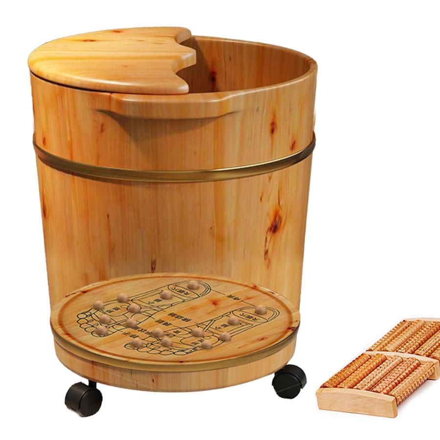 足湯 木製 フットバス バケツ 足つぼ 40cm深型 蓋付き 排水口つき キャスター 足湯器 保温フットバス 足湯桶 家庭用 マッサージ 保温機能 フットケア 冷え対策