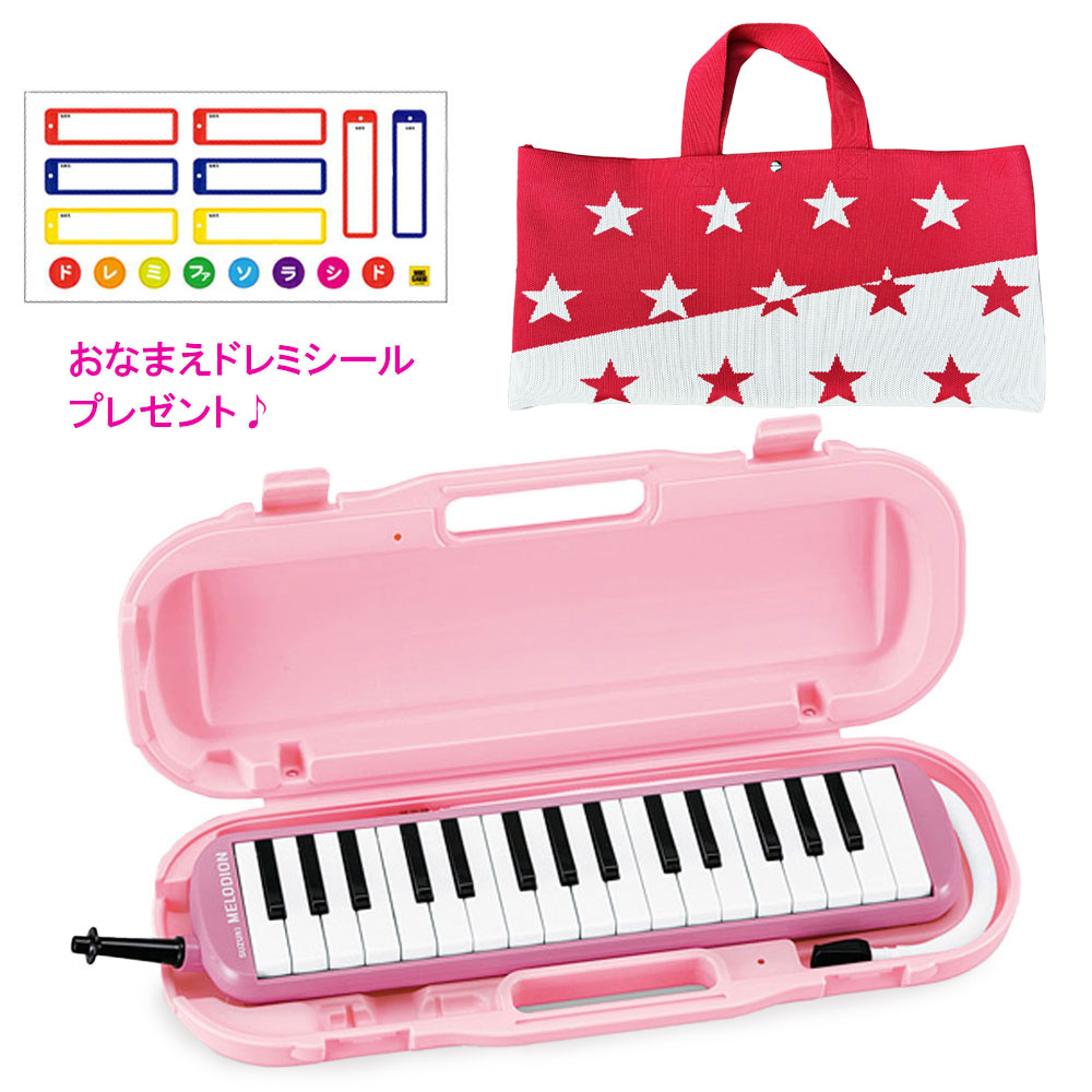 SUZUKI スズキ MXA-32P メロディオン アルト ピンク 鍵盤ハーモニカ (スター・レッドバッグセット) 【おなまえドレミシールプレゼント】