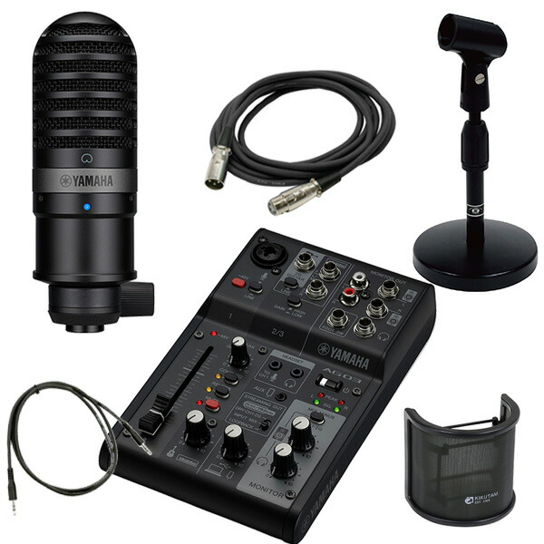 YAMAHA ミキサー AG03MK2 B(黒) + コンデンサーマイクYCM01(黒) + 卓上マイクスタンドAD-11 + ポップガードPO7 + XLRケーブル + ミニケーブル 配信セット