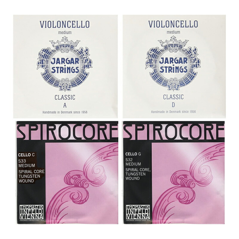 JARGAR & SPIROCORE チェロ弦セット (ヤーガー:S301,S302 / スピロコア:S32,S33 タングステン)