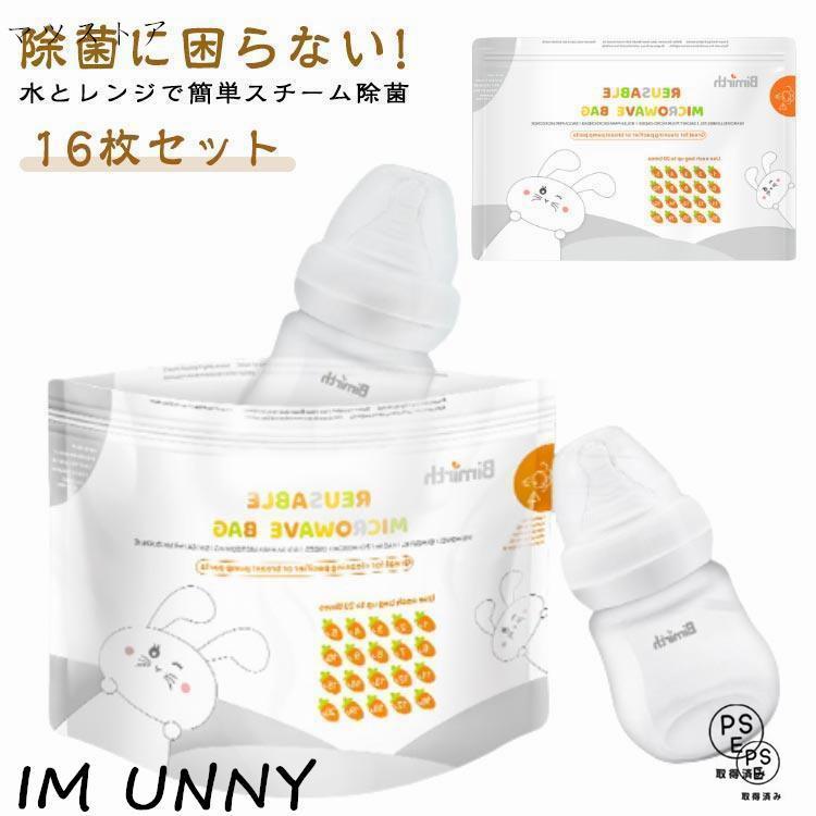 電子レンジ消毒 ベビー 哺乳瓶スチーム除菌 除菌 16枚セット ほ乳瓶 消毒 ケース スタンド 消毒袋 安心安全 哺乳びん除菌 簡単除菌 哺乳瓶