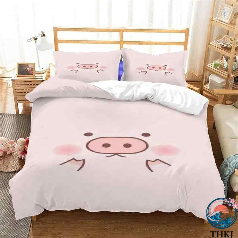 布団カバーセット キッズ 男の子 女の子 かわいい 子豚 動物柄 デジタルプリント ポリエステル生地 北欧風 子供部屋 セミダブルサイズ シングル 寝具
