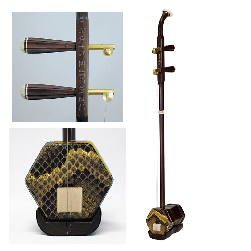 調弦のしやすい金属軸糸巻き採用の紅木二胡。 明るくソリッドな音色。