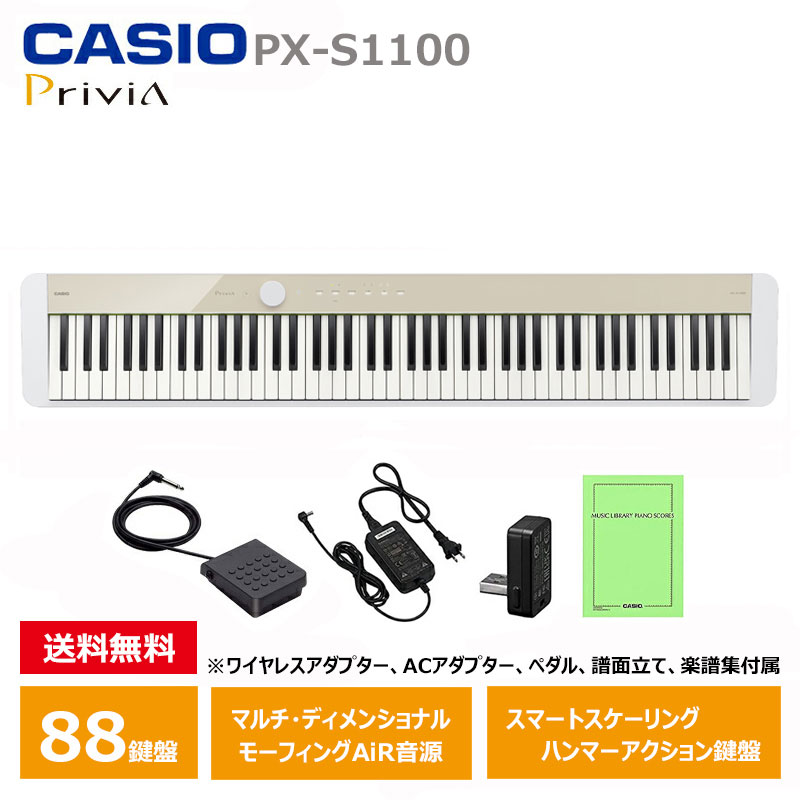 CASIO PX-S1100MB カシオ 電子ピアノ 88鍵盤 軽量 コンパクト Privia / プリヴィア シンプル 簡単 / ペダル 譜面立て 付属
