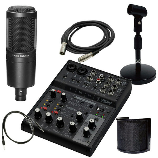 YAMAHA ミキサー AG06MK2 B(黒) + コンデンサーマイクAT2020 + 卓上スタンドAD-11 + ポップガード + XLRケーブル + ミニケーブル 配信セット