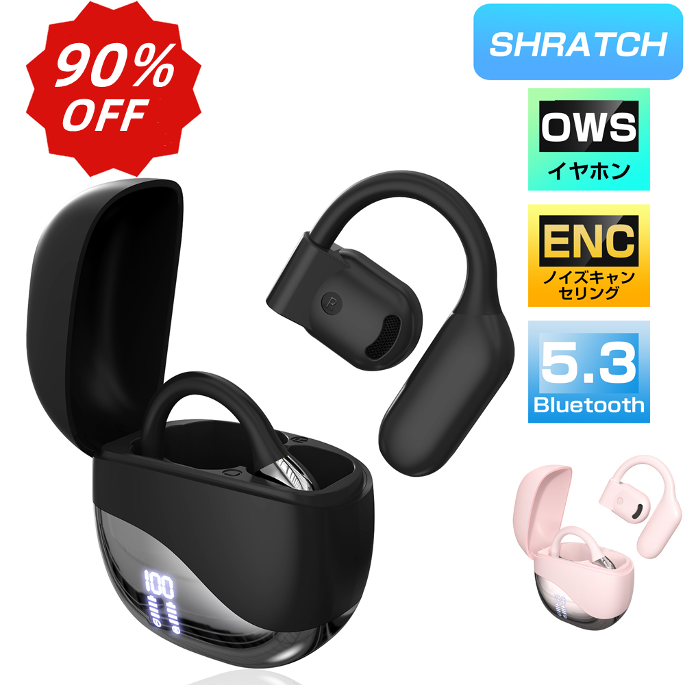 ワイヤレスイヤホン bluetooth イヤホン SHRATCH 2025音質特化モデル Bluetooth オープンイヤー型 耳を塞がない 耳掛け式 イヤフォン 骨伝導の革新