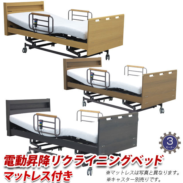 電動ベッド 3モーター ウレタンマットレス 電動昇降リクライニングベッド 介護ベッド シングル 開梱組立て設置付き