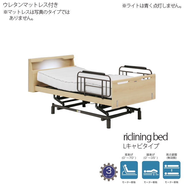 ベッド電動ベッド 3モーター ウレタンマットレス付き ナチュラル Lキャビ リクライニング 介護用 開梱組立て設置付き