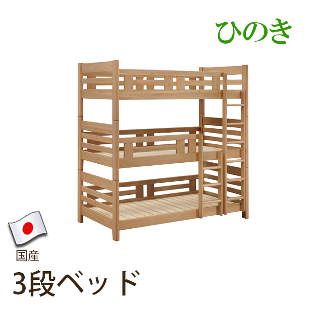 ベッド 三段ベッド 3段ベッド 木製 3段ベッド ブラウン ひのき 蜜ろう仕上げ 桐無垢すのこ 自然塗装 国産品 大川家具