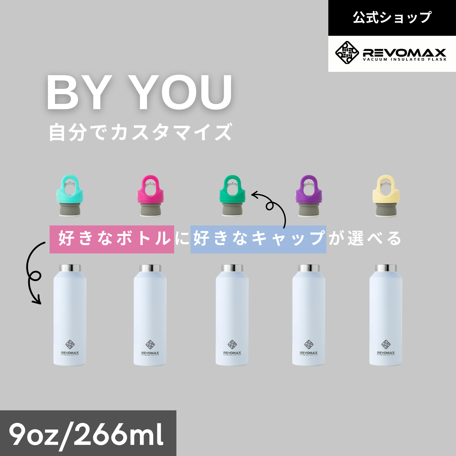 【レビュー特典】【REVOMAX公式】9oz (266ml) By YOU 真空断熱 保冷 保温 炭酸 アウトドア スポーツ ヨガ プレゼント メーカー保証付き レボマックス