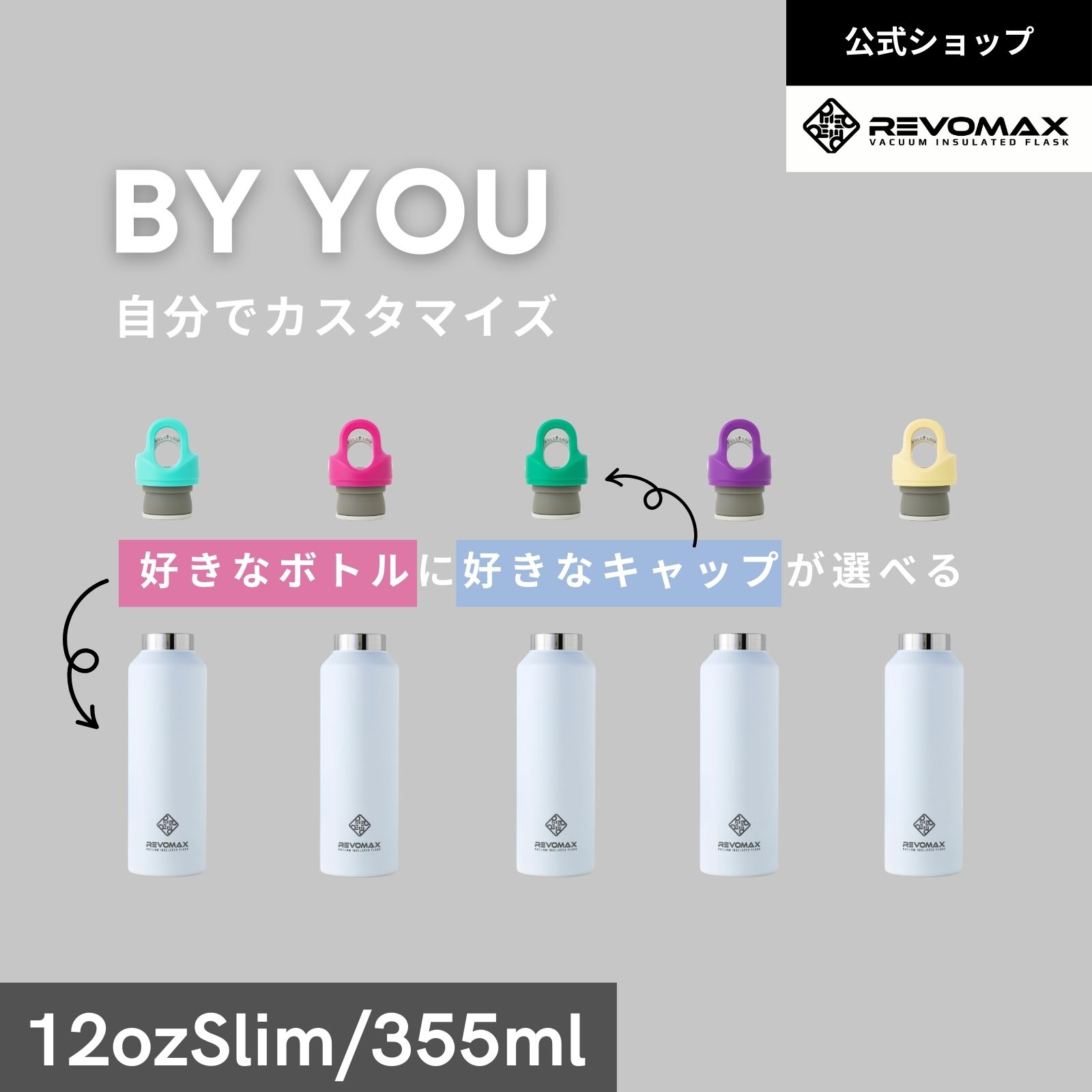 【レビュー特典】【REVOMAX公式】12oz SLIM(355ml) By YOU 真空断熱 保冷 保温 炭酸 アウトドア スポーツ ヨガ プレゼント メーカー保証付き レボマックス