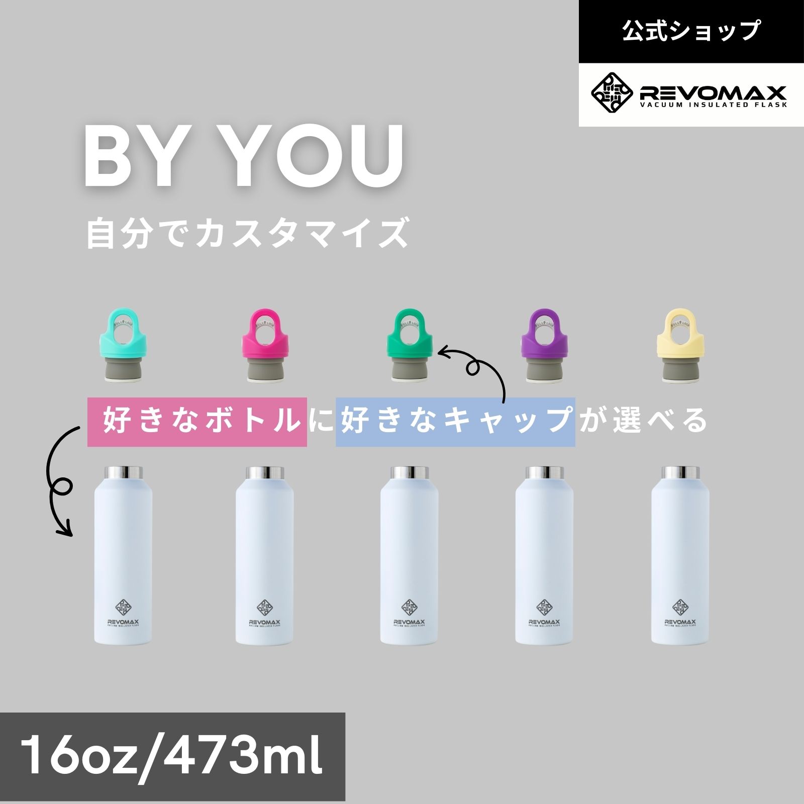 【レビュー特典】【REVOMAX公式】 16oz(473ml) By YOU 真空断熱 保冷 保温 炭酸 アウトドア スポーツ ヨガ プレゼント メーカー保証付き レボマックス
