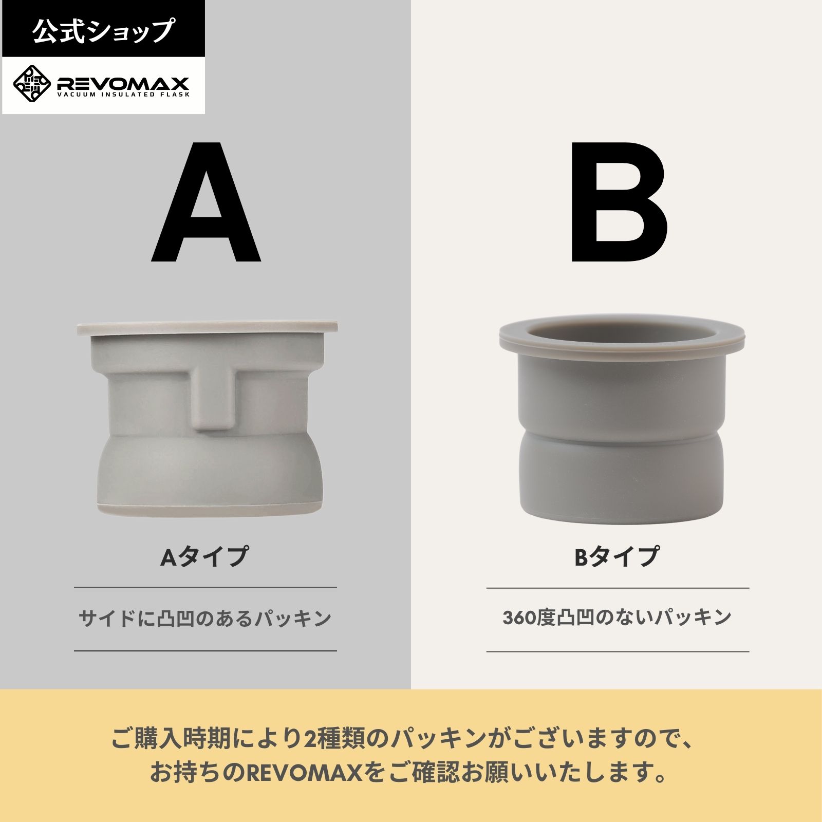 ・ご購入時期により2種類のパッキンがございますので、お持ちのREVOMAXをご確認お願いいたします。・パッキンの形状による性能の差はございません。・パッキンにつきまして消耗品となり、ご使用頻度によりますが2年を目安に買い替えをお勧めしております。
