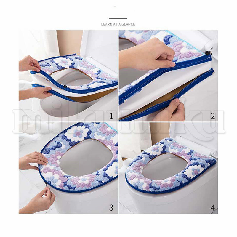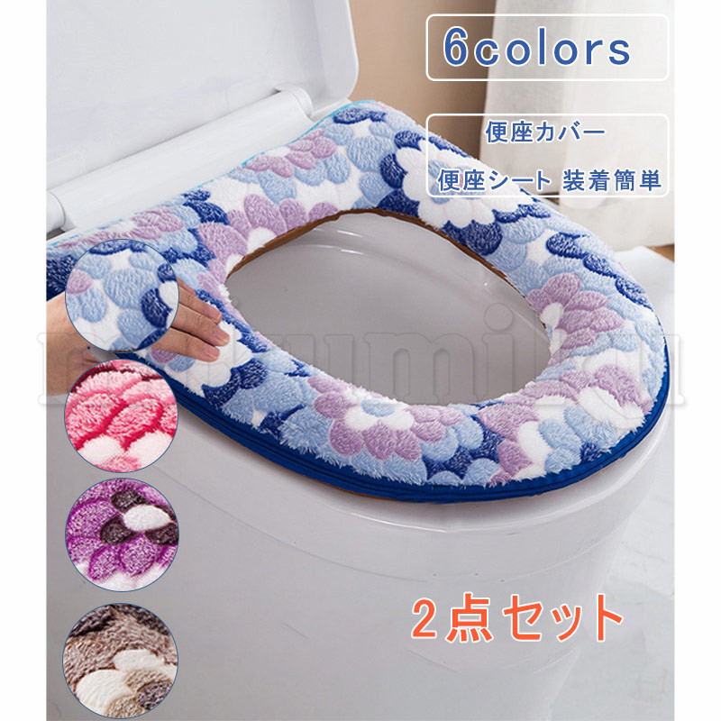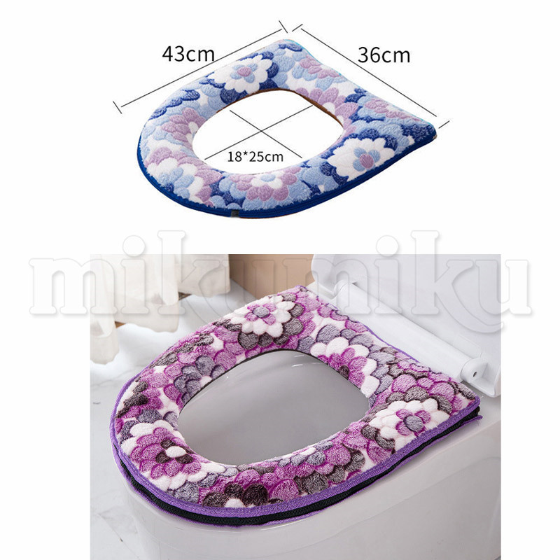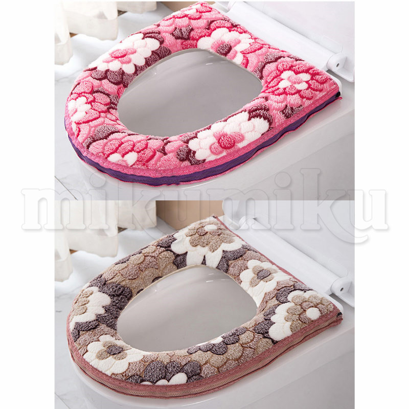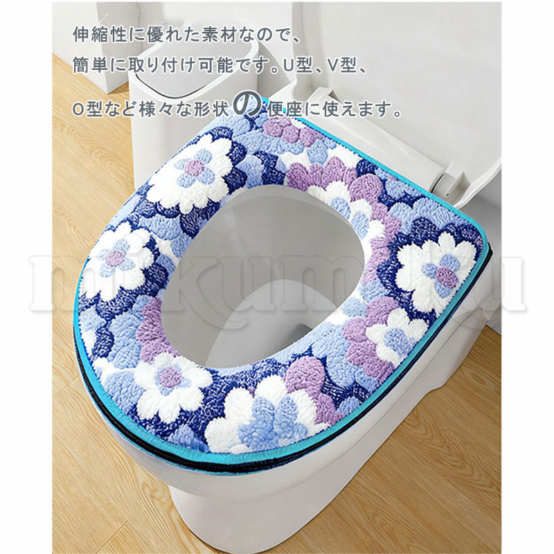 便座カバー 花柄 2点セット O型 洗える ファスナー 厚手 ふわふわ 便座シート トイレカバー 便座マット 装着簡単 便座冷たい対策 トイレ用品 抗菌防臭 かわいい