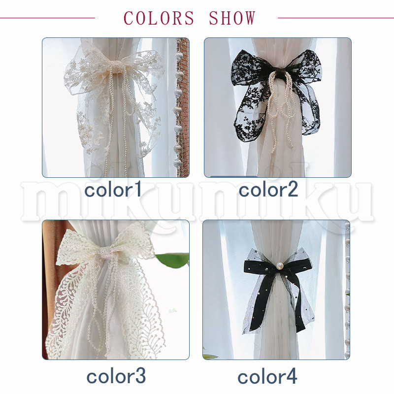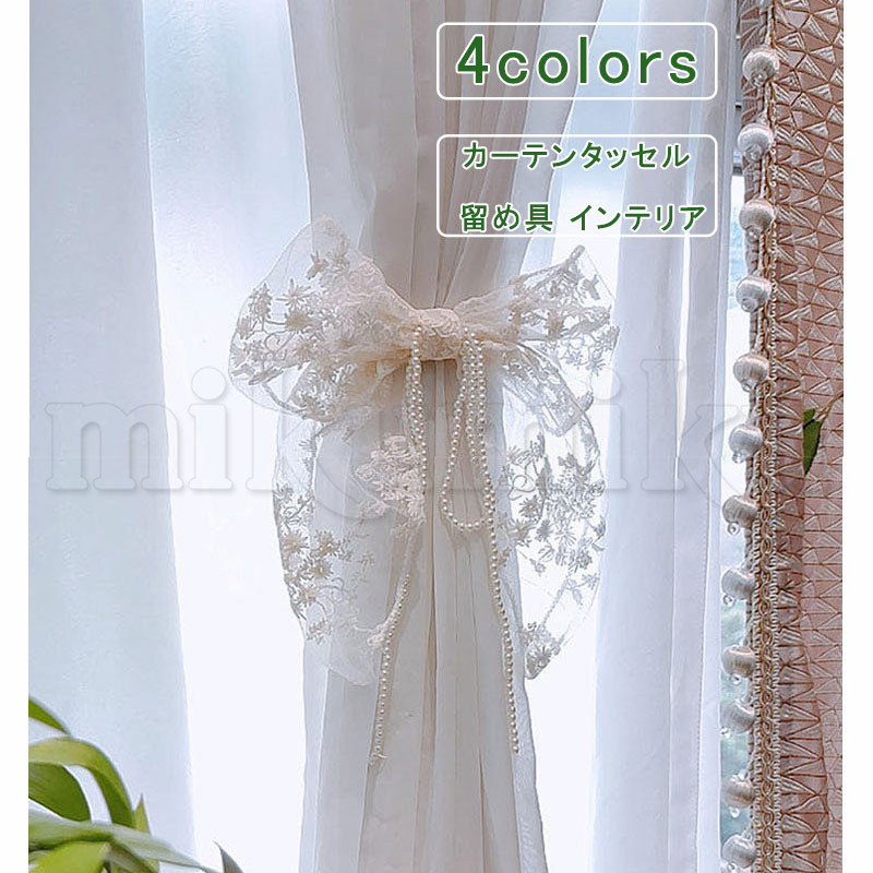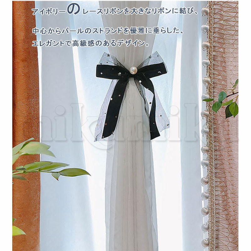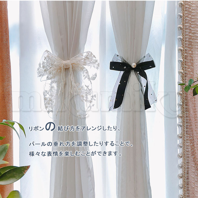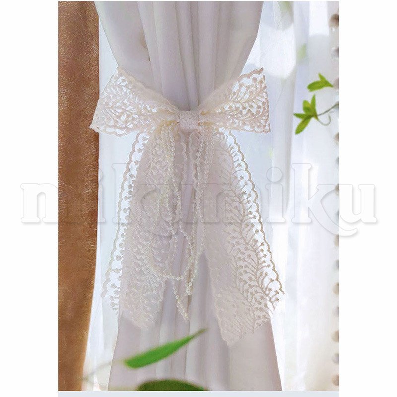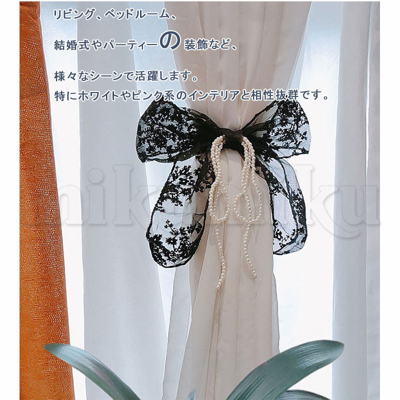 カーテンタイバック フラワー リボン レース パール 透け感 カーテンタッセル カーテンホルダー カーテン留め 留め具 留め紐 ふさかけ アクセサリー ホルダー