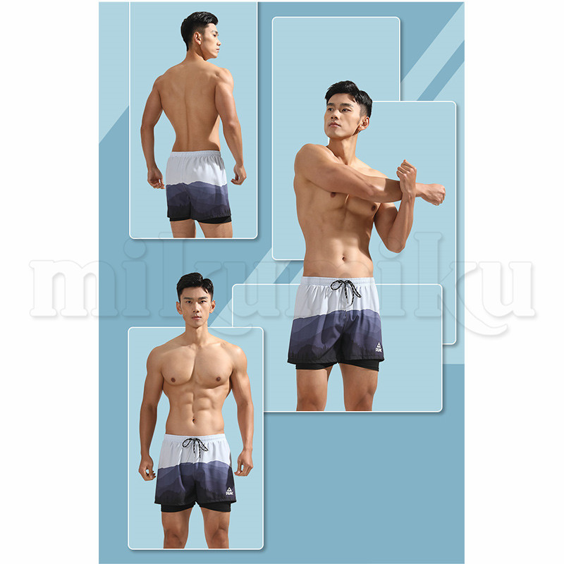 水着 メンズ 2層 膝丈 無地 模様 サーフパンツ 海パン ボードショーツ スイムウェア ラッシュガード ミズギ 水陸両用 プール 海辺 ウエストゴム