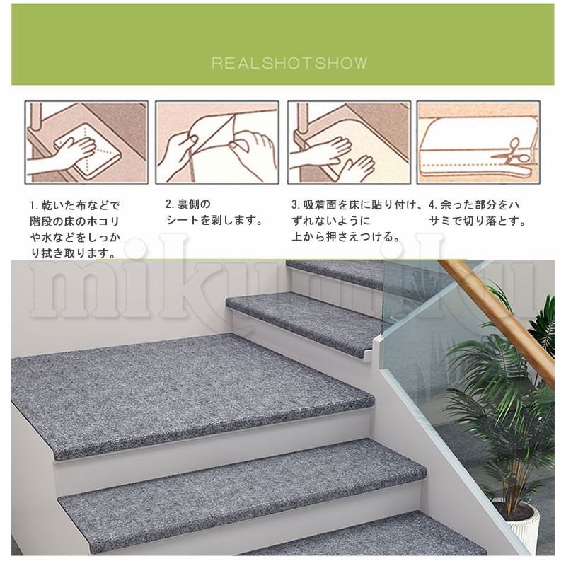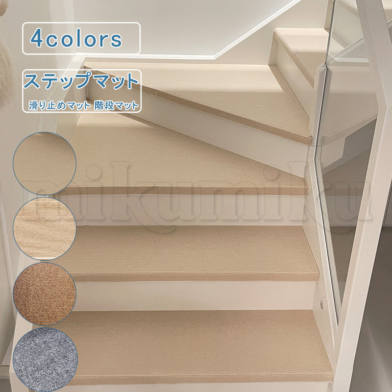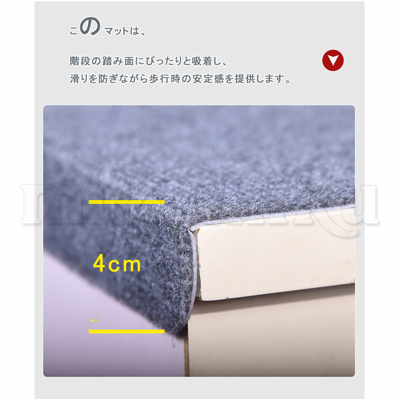 5枚セット 階段カーペット 階段マット 26*65+4cm ステップマット 滑り止めマット 無地 幅広 吸着マット シート カーペット 防音 転倒防止 キズ防止 新生活