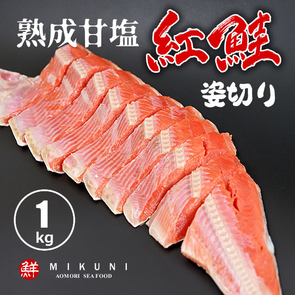 紅鮭半身 熟成甘塩 約1キロ 姿切り 10〜12切りカット 真空パック