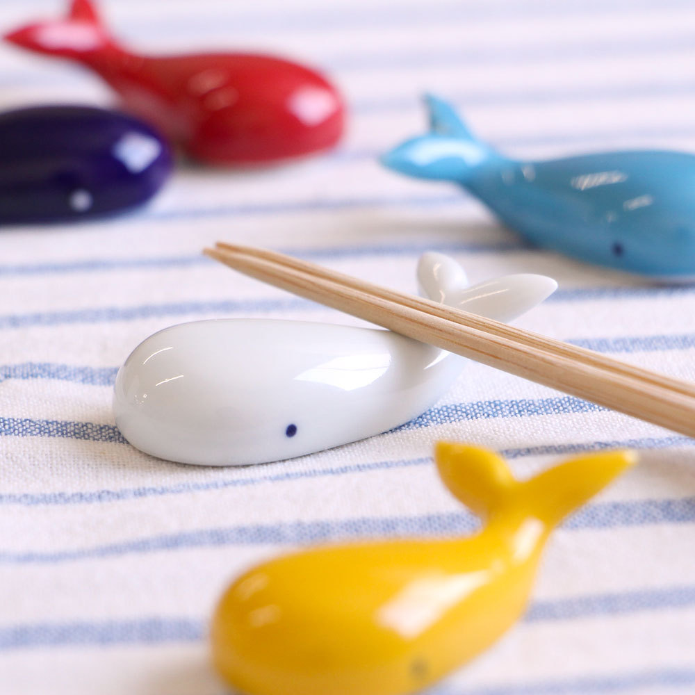 長崎県の波佐見で作られた磁器製の箸置きです。クジラがとても可愛いです。食卓を海に見立てると優雅に泳いでいるようで楽しいですよ。