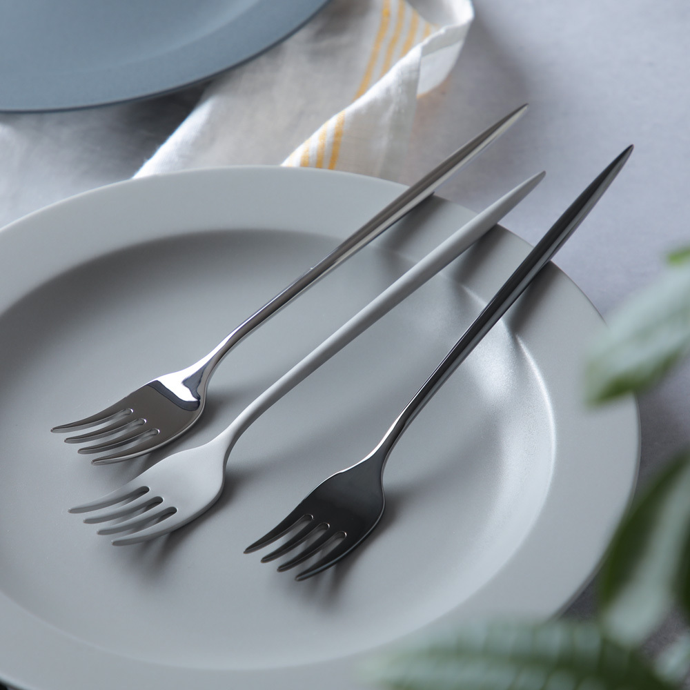 関連キーワード:カトラリー ナイフ フォーク スプーン スタイリッシュ かっこいい プロダクト デザイン デザイナー 中野科学 新潟県燕市 ブラック マット シルバー 鏡面 ミラー 仕上げ 丸い 長い 細い 繊細 シンプル シルエット モノクロ テーブルフォーク ディナーフォーク パスタフォーク サラダフォーク 食事用フォーク デザートフォーク