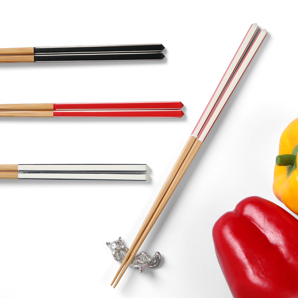 ツートーンの色使いが可愛い天然素材の孟宗竹から作られた細身の竹のお箸です。孟宗竹の特徴を生かし、細くしなやかに仕上げています