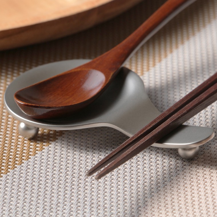 ステンレス製のスプーンレストです。お皿の部分にスプーンを置き、飛び出ている部分にお箸を置くことができます。カレーライスを食べながら、お箸をつかってサラダやおかずを食べる時にこれがあると便利です。中華料理のレンゲを置くレストにするのも良いです。シンプルかつ丈夫なのでレストランなどの業務用にもおすすめです。
