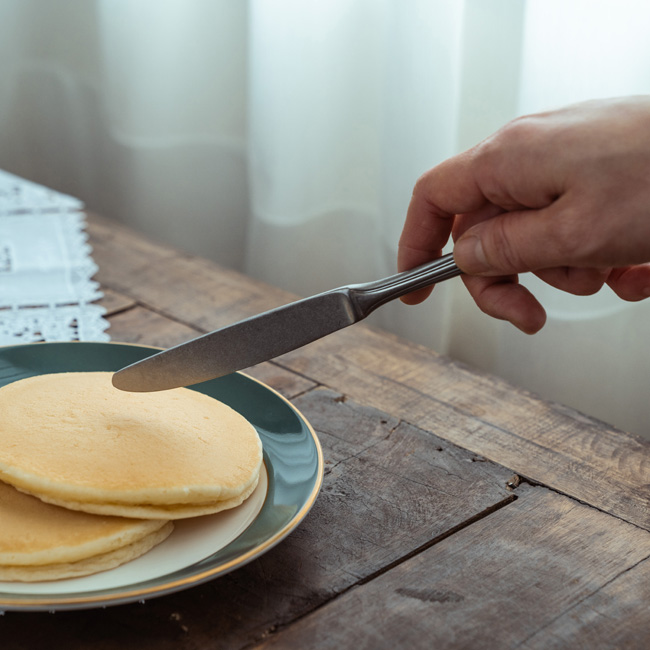 ヴィンテージ加工を施されたカトラリーは、かつて喫茶店で見かけたような懐かしさも感じさせつつ、アンティーク食器のような上品さを醸し出す。