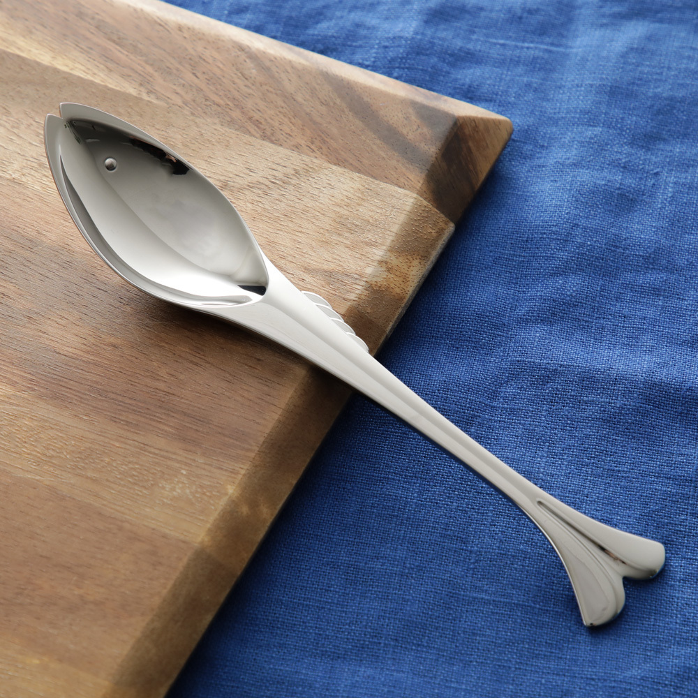 サーバースプーン・サーバーフォーク、ケーキサーバーのような大ぶりカトラリーも充実。一つあるだけで、食卓のアクセントになります。魚のかたちがかわいらしく、テーブルも華やぎます。