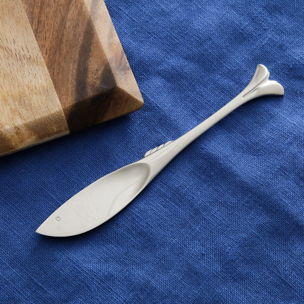 サーバースプーン・サーバーフォーク、ケーキサーバーのような大ぶりカトラリーも充実。一つあるだけで、食卓のアクセントになります。魚のかたちがかわいらしく、テーブルも華やぎます。