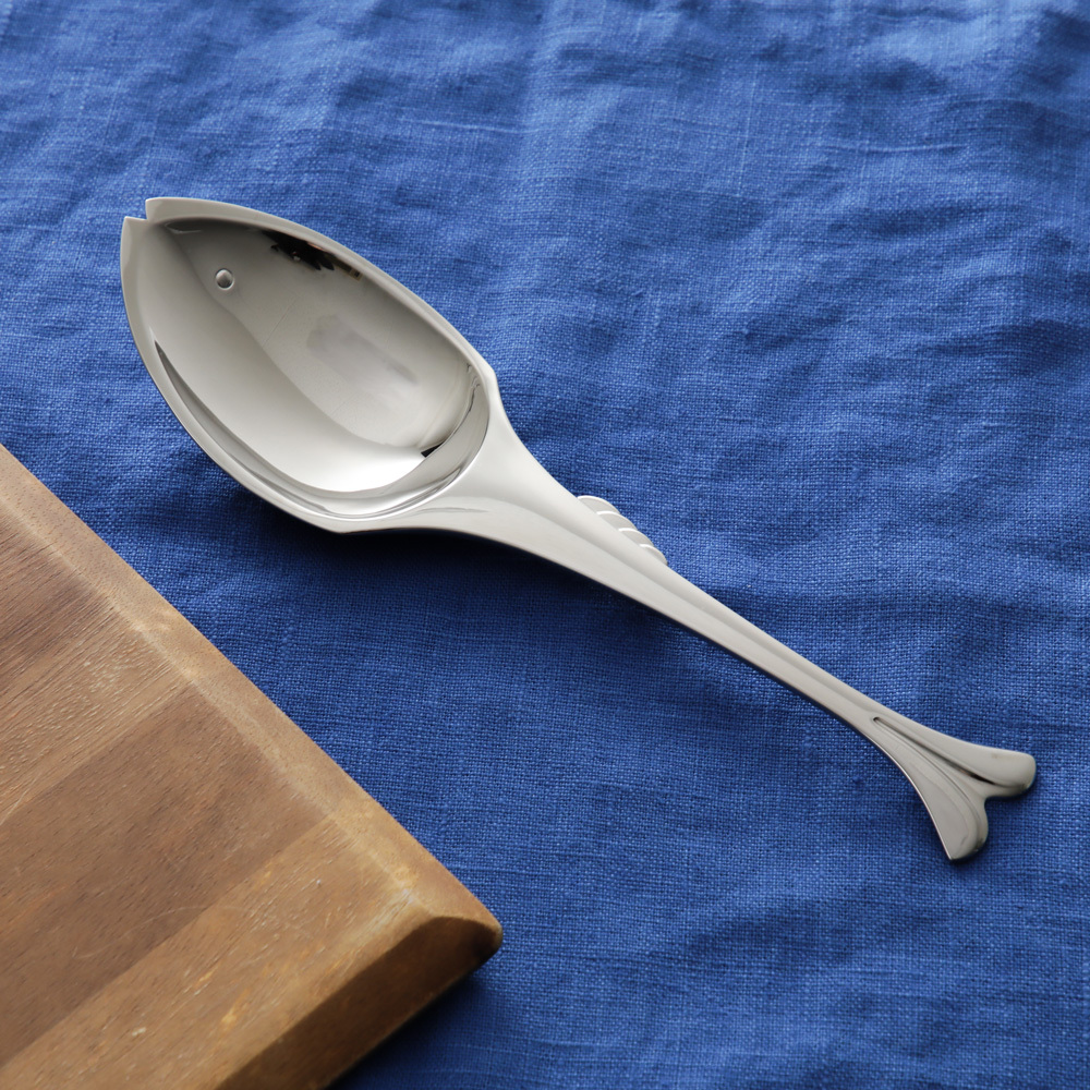 サーバースプーン・サーバーフォーク、ケーキサーバーのような大ぶりカトラリーも充実。一つあるだけで、食卓のアクセントになります。魚のかたちがかわいらしく、テーブルも華やぎます。